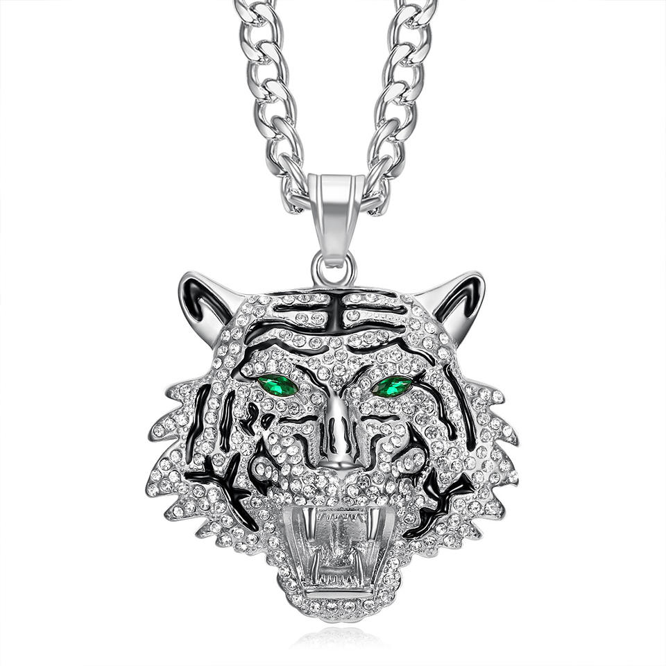 2024เพทายลายเสือฮิปฮอปทำจากสเตนเลส316เครื่องประดับชุบทอง18K สร้อยคอเครื่องประดับแฟชั่นสำหรับผู้ชายขายส่ง