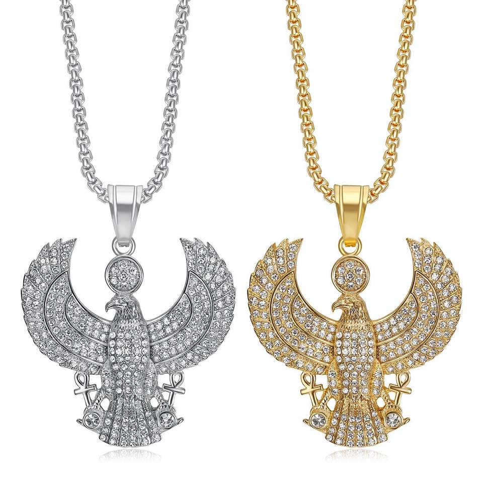 Hip Hop Bar Egypt Horus Eye สร้อยคอจี้แฟชั่นทำจากสเตนเลสไม่เสื่อมเสียกันน้ำสำหรับผู้ชายผู้ชายผู้ชายผู้ชาย