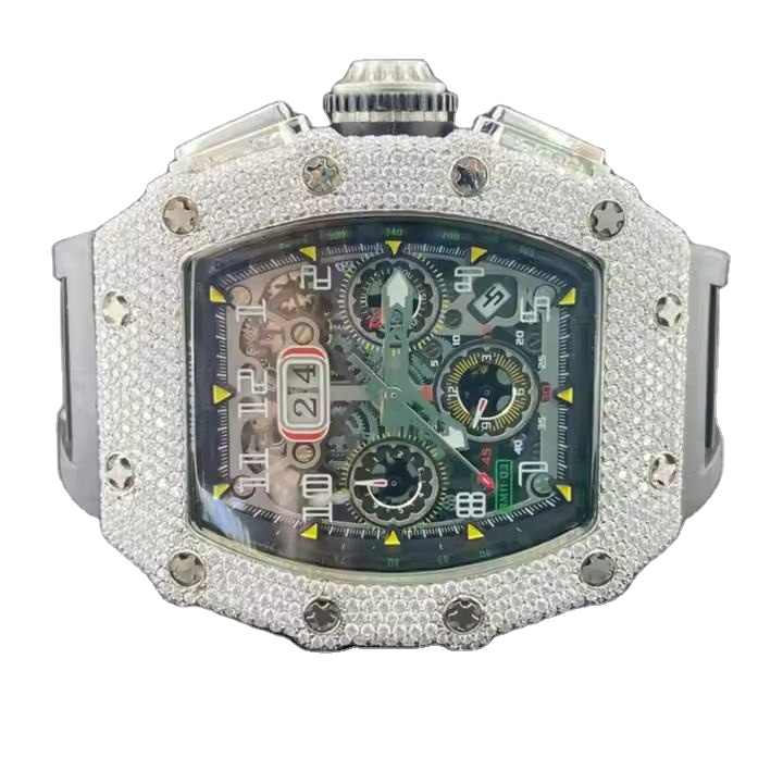 นาฬิกาข้อมือผู้ชายสไตล์ฮิปฮอป หรูหรา แฟชั่น หน้าปัดควอตซ์แก้วโมอิสซาไนต์ ตัวเรือนสแตนเลสสตีล สายสแตนเลสสตีล กลไกควอตซ์ ประดับเพชรแล็บ