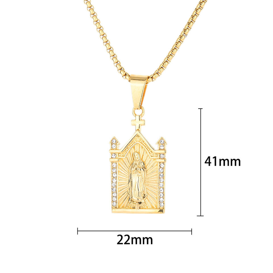 Hip Hop Catholic Virgin Mary Religious Waterproof Stainless Steel Non Tarnish Free Pendant Fashion Jewelry Necklace for Men Man