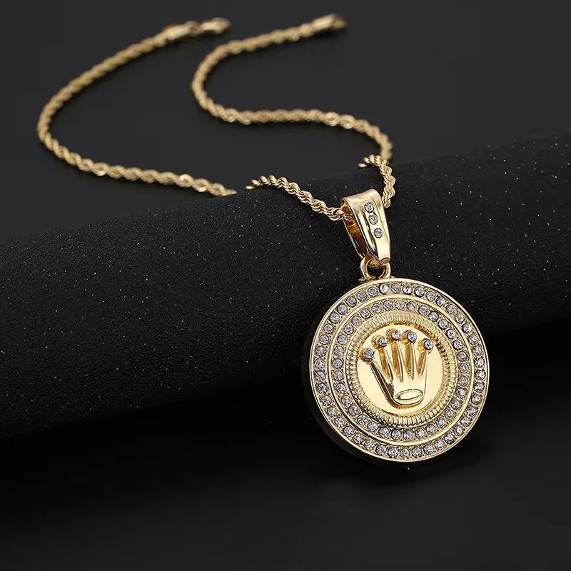 สร้อยคอจี้รูปมงกุฎฮิปฮอป พร้อมโซ่ทอง 18K ชุบทองแดงผสม ดีไซน์รูปตัวอักษร เหมาะสำหรับงานปาร์ตี้