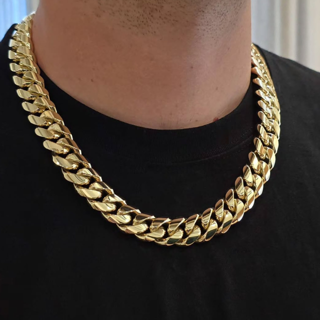 สร้อยคอแบบ Cuban Link สไตล์ฮิปฮอปสำหรับผู้ชาย ชุบทองแท้ สีทอง ขนาด 12 มม. 14 มม. 16 มม. 18 มม. 20 มม. ได้รับการรับรองจาก IGI