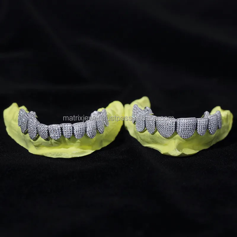 ฮิปฮอปที่กำหนดเอง925เงินฟัน grillz เย็นออก Moissanite เพชร grillz ฟันเงินเครื่องประดับราคาที่ดีที่สุด