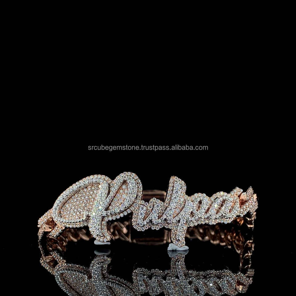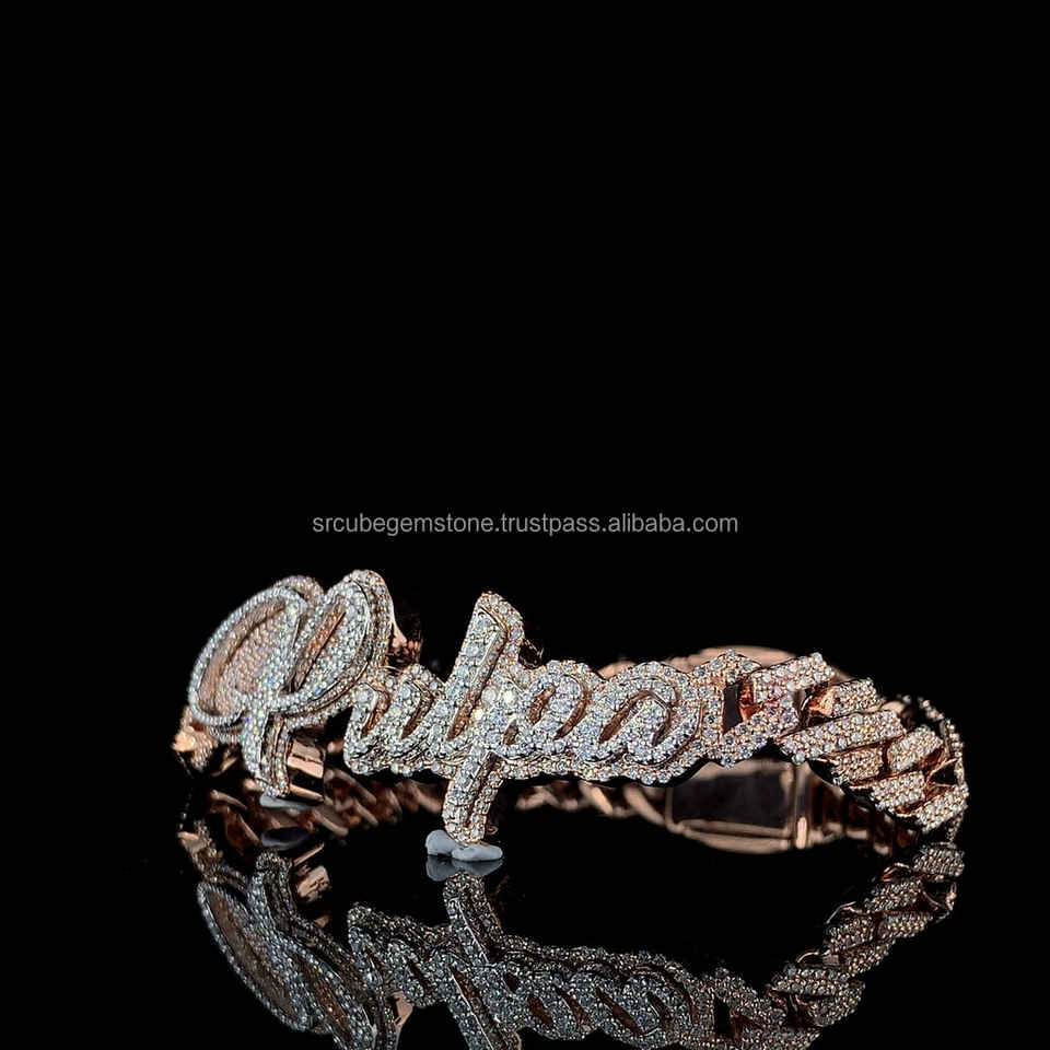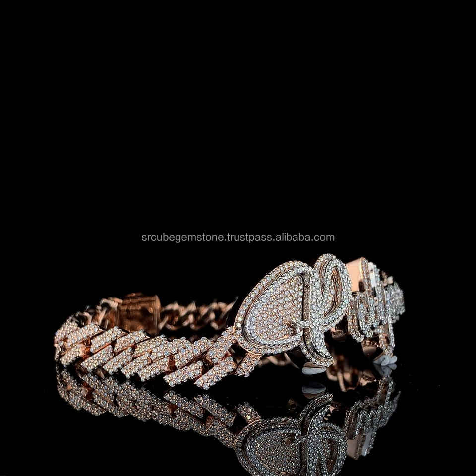 สร้อยข้อมือเงิน925ฮิปฮอปสองสีแบบกำหนดเองสีเงินกุหลาบเงินประดับเพชรสวิสพร้อมตัวอักษรสั่งทำ