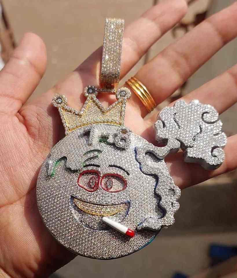จี้น่ารักฮิปฮอป VVS Moissanite ทรงกลมตัดน้ำแข็งชุบทองเงินสเตอริ่งสำหรับทุกเพศ