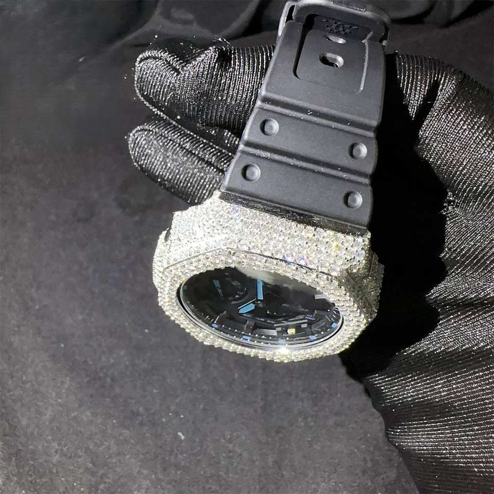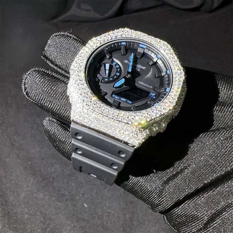 นาฬิกาข้อมือผู้ชายสไตล์ฮิปฮอปหรูหรา หน้าปัดโรมันประดับเพชร VVS มอยส์ซาไนต์ ชุบทอง สายหนัง กันน้ำ แบบอนาล็อก