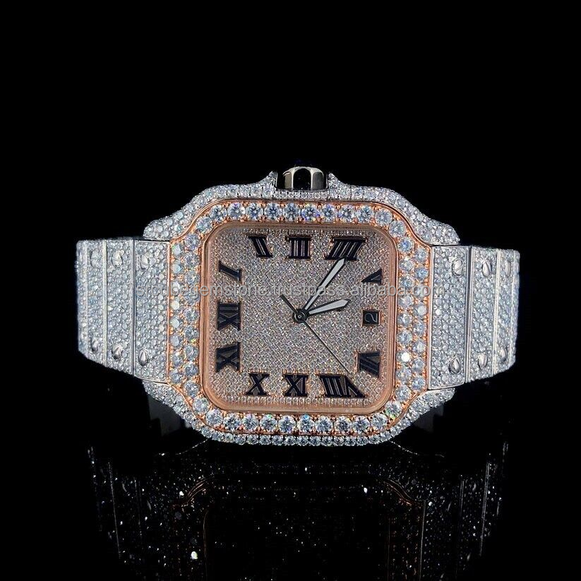 นาฬิกาเพชรฮิปฮอปตัดกลมทุกขนาดปรับแต่งนาฬิกาเพชรทําด้วยมือ Moissanite จากผู้ผลิต