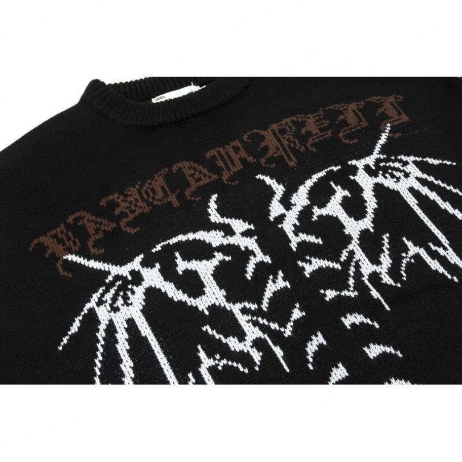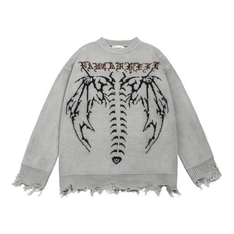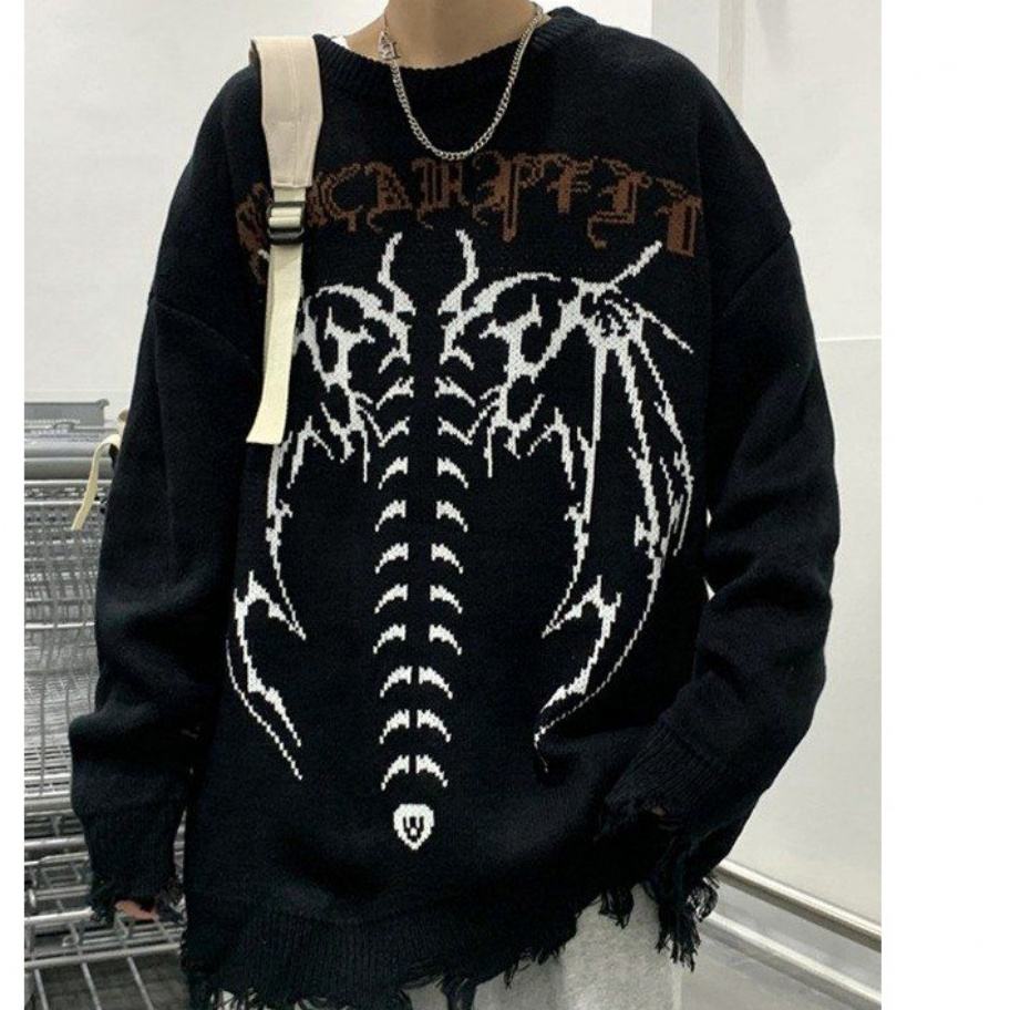 ชื่อสินค้า:เสื้อสเวตเตอร์ถักชาย Frayed Gothic Letter Bat Skeleton พิมพ์เสื้อสวมหัว