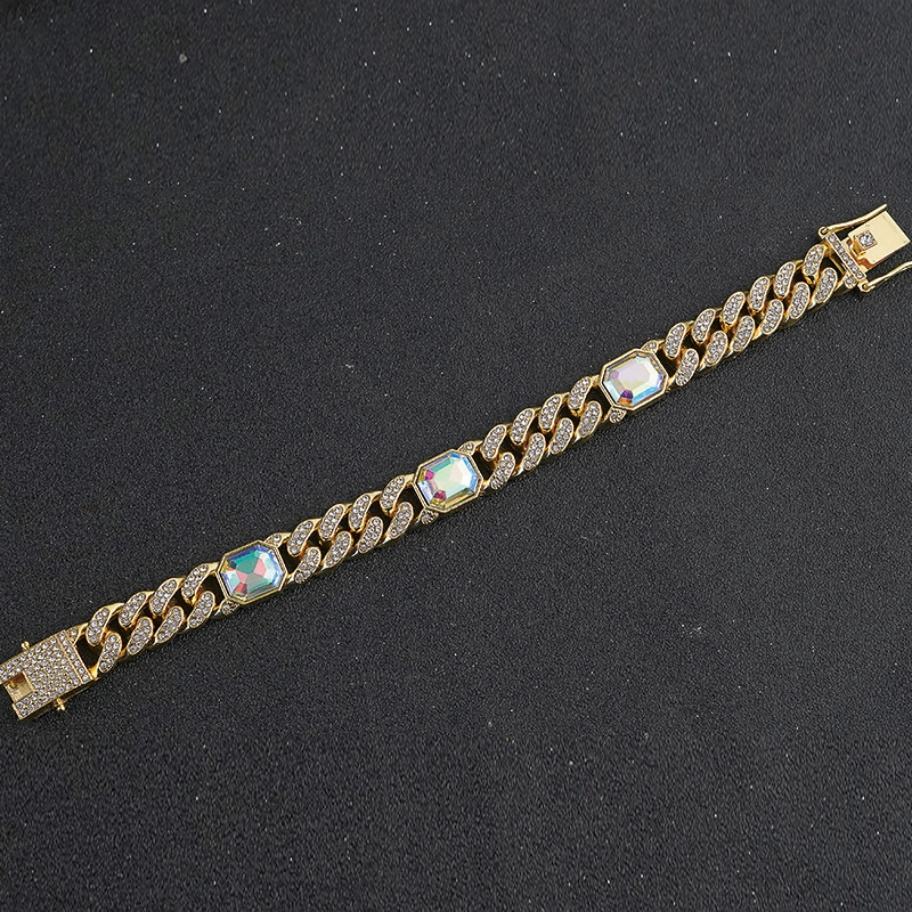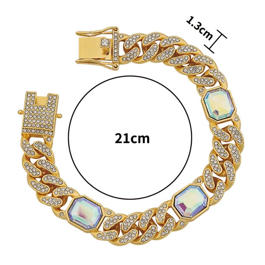 สร้อยคิวบาลิงค์แบบเต็มเส้นประดับเพชรฮิปฮอป ขนาด 13 มม. สีทอง/สีเงิน สไตล์ไมอามี่ ประดับเพชรไรน์สโตน สำหรับผู้ชาย