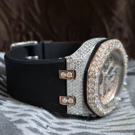 นาฬิกาฮิปฮอปสำหรับผู้ชาย ระบบอัตโนมัติ หรูหรา ประดับเพชรธรรมชาติ VVS มอยส์ซาไนต์ สายยางและสแตนเลสสตีล สำหรับนักธุรกิจ
