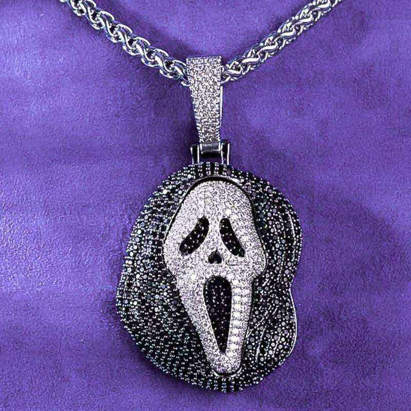 จี้รูปหน้าผีฮิปฮอปสำหรับผู้ชายและผู้หญิง สร้อยคอจี้หน้ากากสุดเท่ห์ ประดับเพชรโมอิสซาไนต์สีเงิน สไตล์สตรีทแวร์ ของขวัญสำหรับแร็ปเปอร์