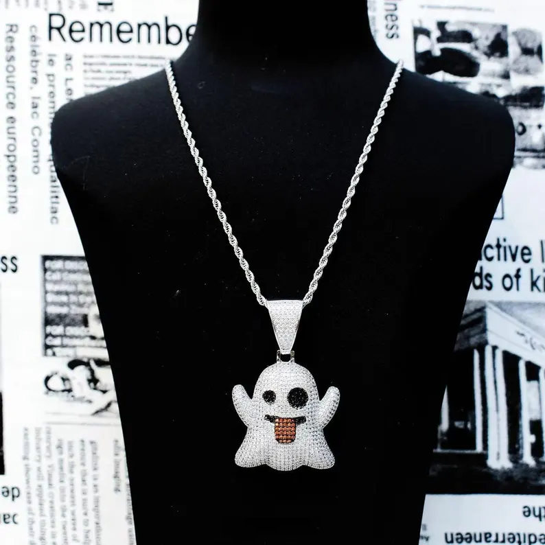 จี้รูปผีประดับเพชรโมอิสซาไนต์ VVS ระยิบระยับ ทำจากเงินแท้ 925 สไตล์ฮิปฮอปน่ารัก เหมาะสำหรับเทศกาลฮาโลวีน