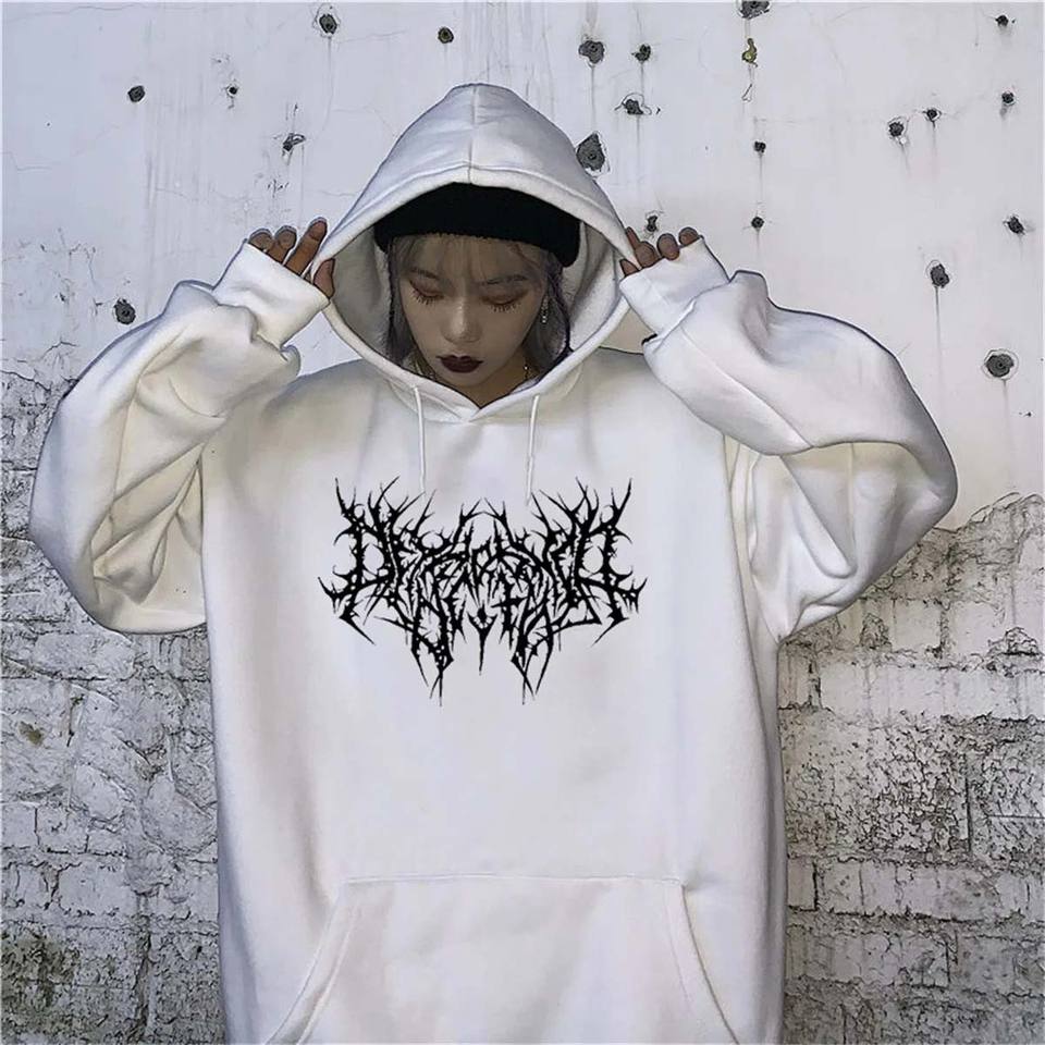 เสื้อสเวตเชิ้ตมีฮู้ดฮิปฮอปโอเวอร์ไซส์สำหรับผู้หญิงเสื้อฮู้ดแนวพังก์ตลกถักแบบลำลองสำหรับฤดูใบไม้ผลิฤดูใบไม้ร่วงเสื้อผ้าสตรีท
