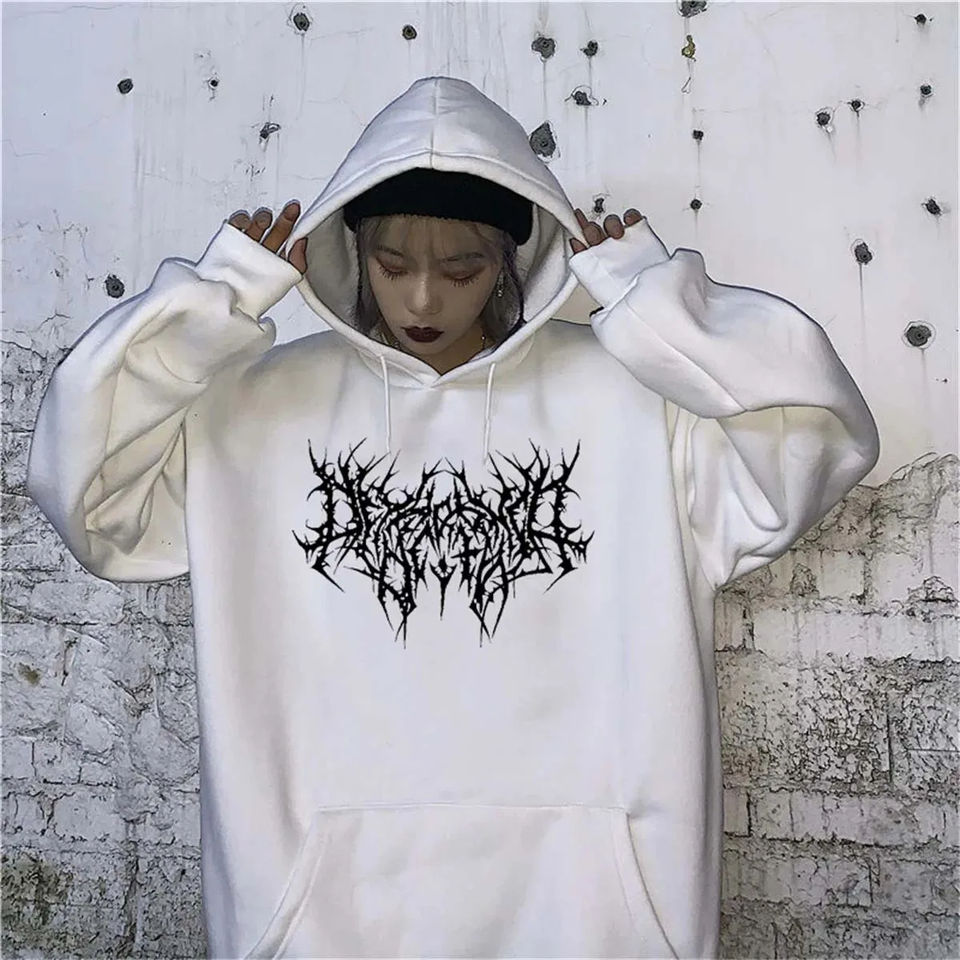 เสื้อสเวตเชิ้ตมีฮู้ดฮิปฮอปโอเวอร์ไซส์สำหรับผู้หญิงเสื้อฮู้ดแนวพังค์แนวสตรีทแบบถักสำหรับฤดูใบไม้ผลิฤดูใบไม้ร่วง