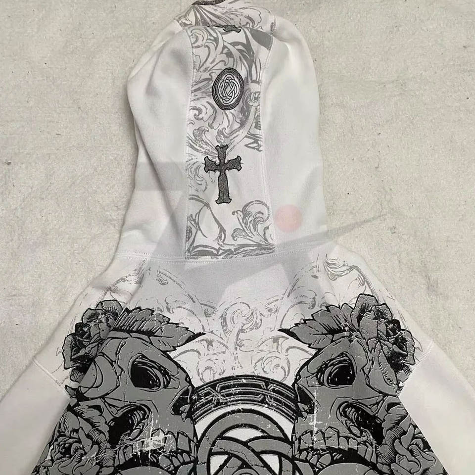 เสื้อฮู้ดผ้าฝ้ายเฮฟวี่เวทมีฮู้ดปักลาย