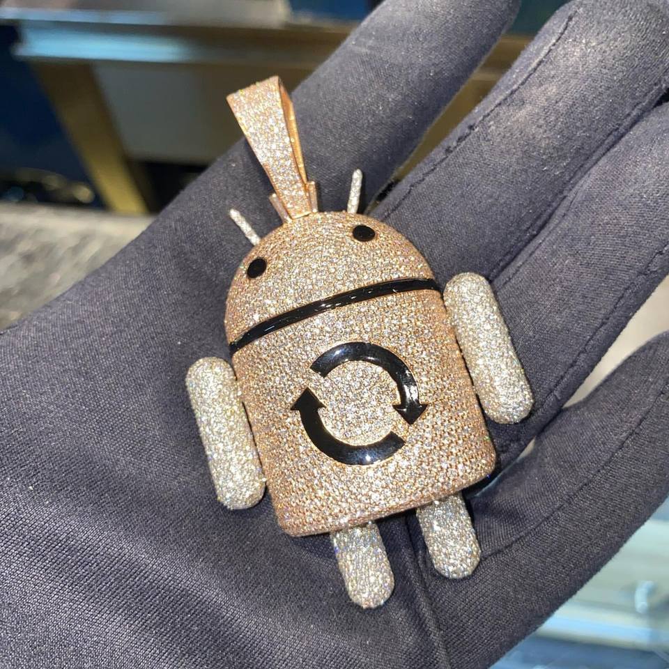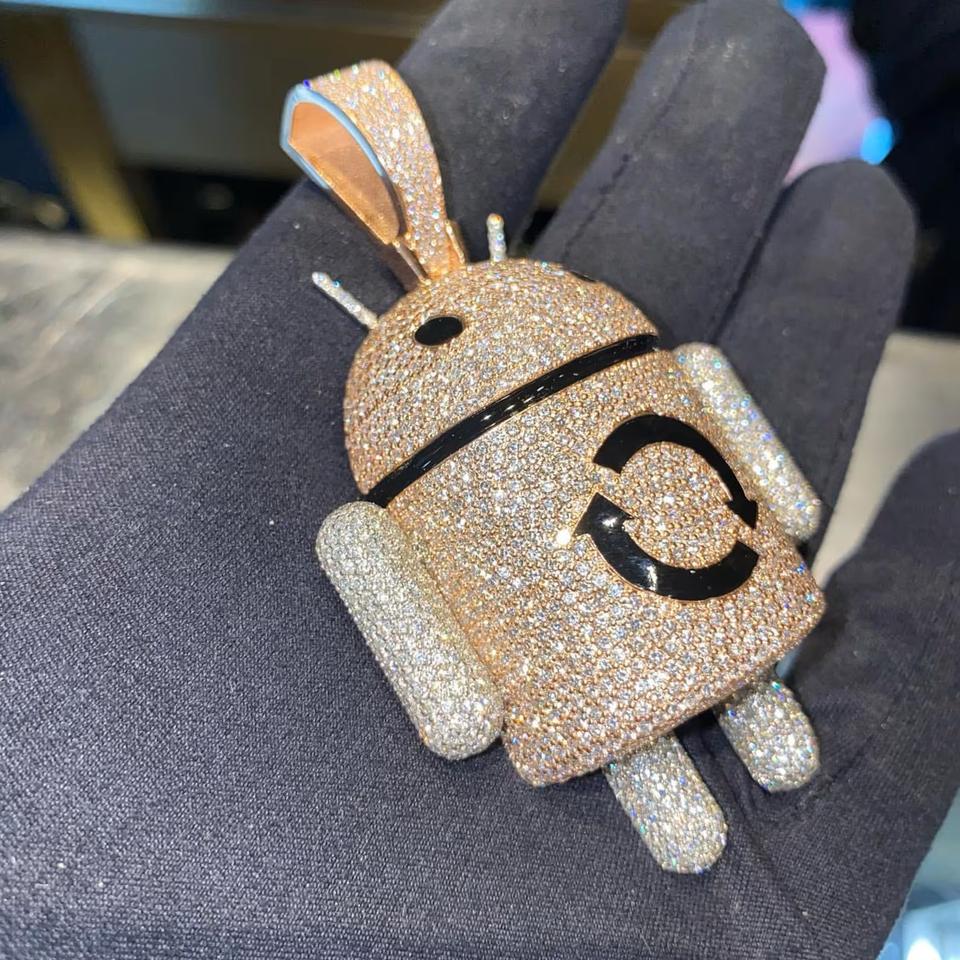 ออกแบบ: จี้หุ่นยนต์ประดับเพชร 925 เงินแท้