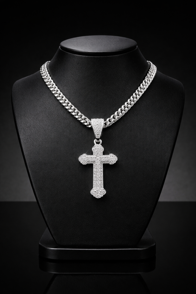 จี้รูปกางเขนแบบฮิปฮอปประดับเพชรโมอิสซาไนต์สำหรับผู้ชาย เงิน ทอง 10K 14K พร้อมสร้อยทองหรูหราสำหรับเป็นของขวัญ