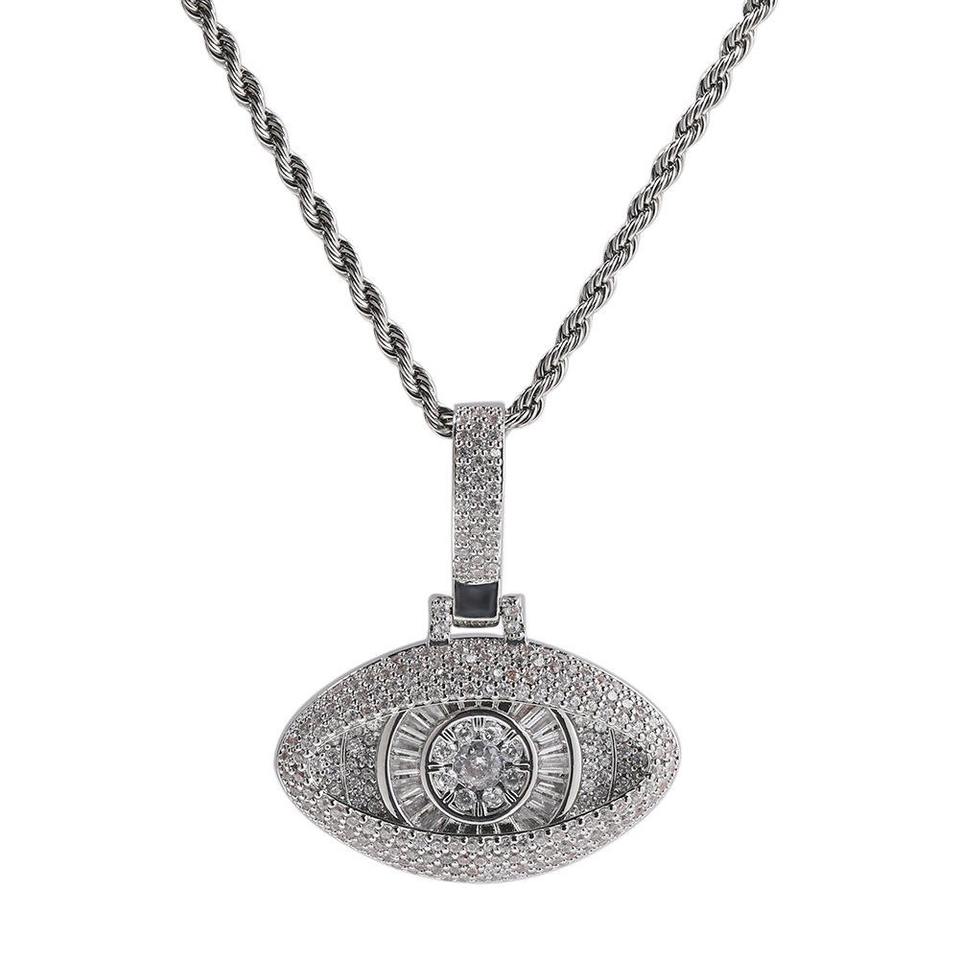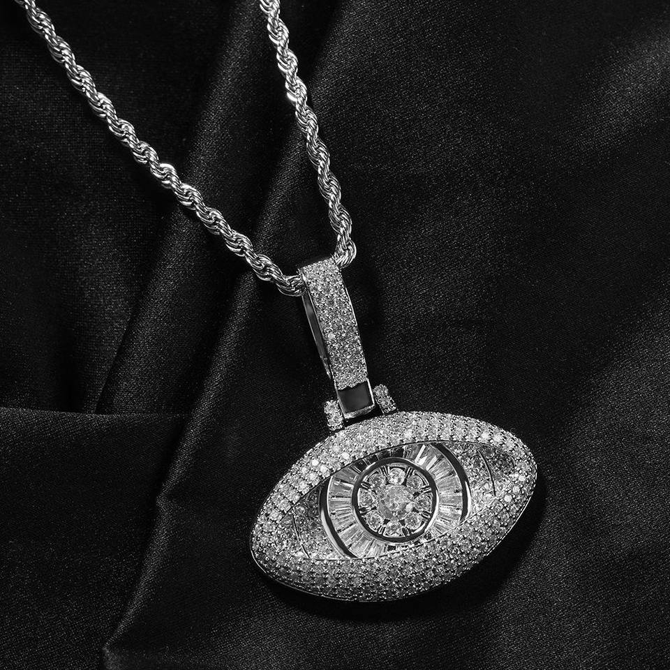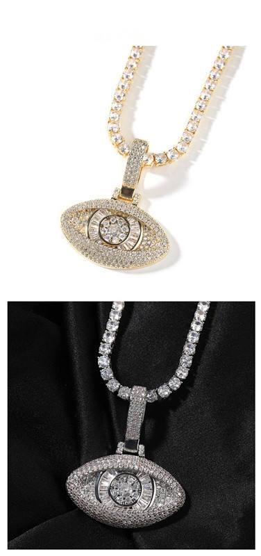 สร้อยคอจี้รูปดวงตาประดับเพชรแบบฮิปฮอป ชุบทอง/เงิน ประดับเพชรเต็มชิ้น