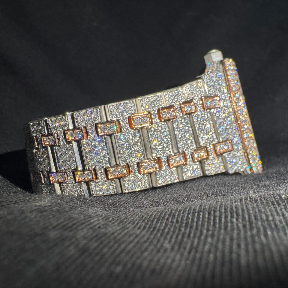 นาฬิกาควอตซ์ผู้ชายแฟชั่นหรูหราสไตล์ฮิปฮอปประดับเพชรโมอิสซาไนต์ สายสแตนเลส หน้าปัดคริสตัล กลไก ETA ราคาดีที่สุดในสหรัฐอเมริกา