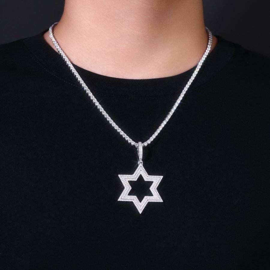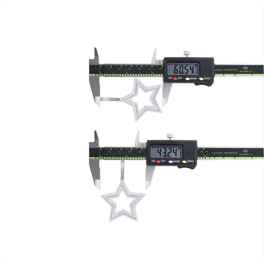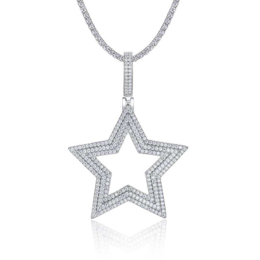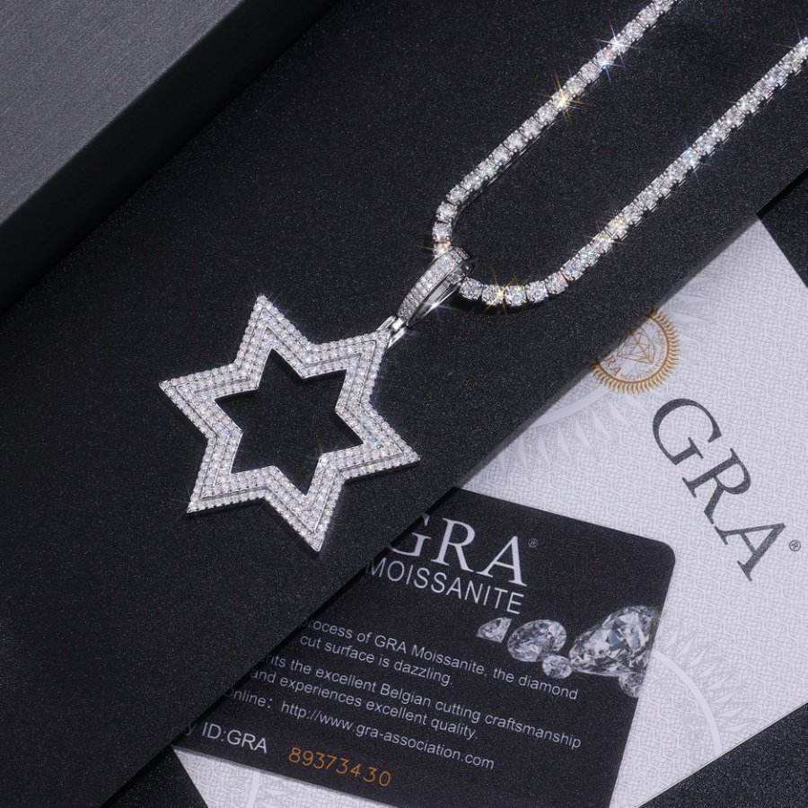 จี้รูปดาวฮิปฮอปประดับเพชรโมอิสซาไนต์ทรงบริลเลียนต์ ชุบทองคำขาวบนเงินแท้ 925 พร้อมสร้อยคอหรูหรา