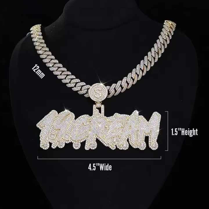 สร้อยคอฮิปฮอปประดับเพชร VVS เงินแท้ 925 พร้อมจี้ตัวอักษรแบบกำหนดเองสำหรับผู้ชาย