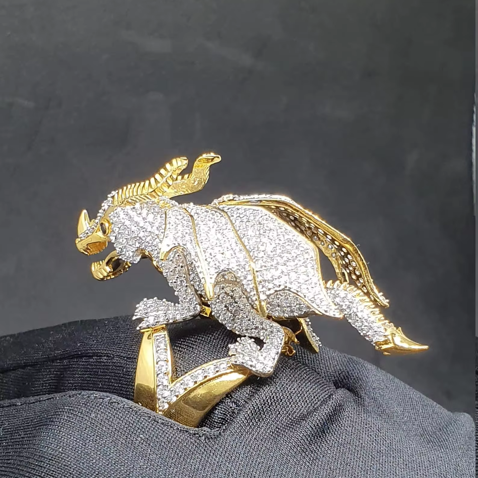 แหวนเพชรรูปสัตว์มังกรแบบเต็มทรงฮิปฮอปทำจากเพชร10K 14K 18K ประดับแล็บสุดหรูทันสมัย