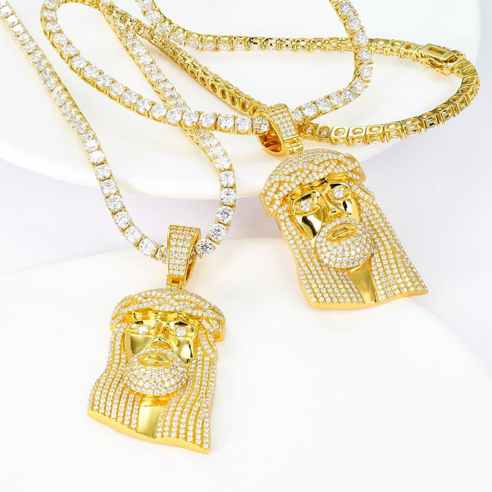 จี้พระเยซูสไตล์ฮิปฮอป สร้อยคอคิวบา เงินแท้ 925 ชุบทอง ประดับมอสซาไนต์ สำหรับผู้ชาย