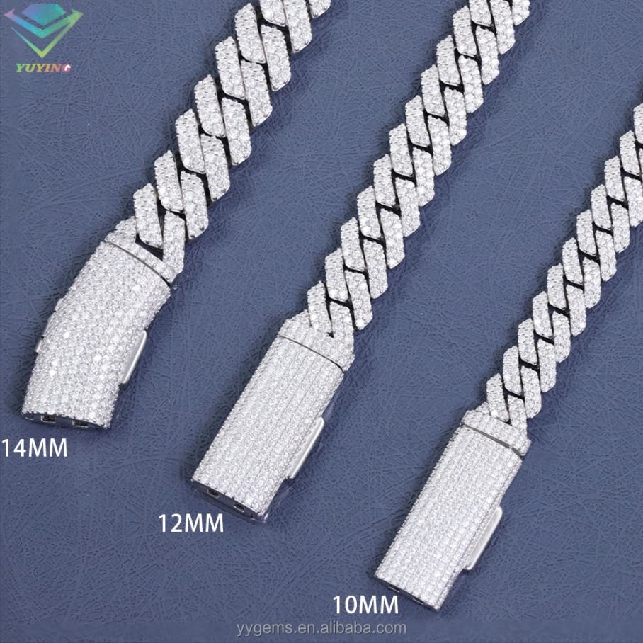 สร้อยคอฮิปฮอปแบบคิวบันลิงค์ 2 แถว ขนาด 8 มม. 10 มม. 12 มม. 14 มม. ประดับเพชรโมอิสซาไนต์ VVS เงินแท้ 925 พร้อมใบรับรอง GRA