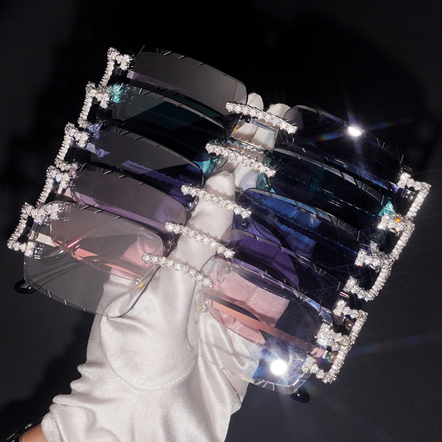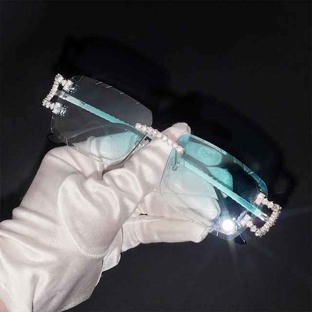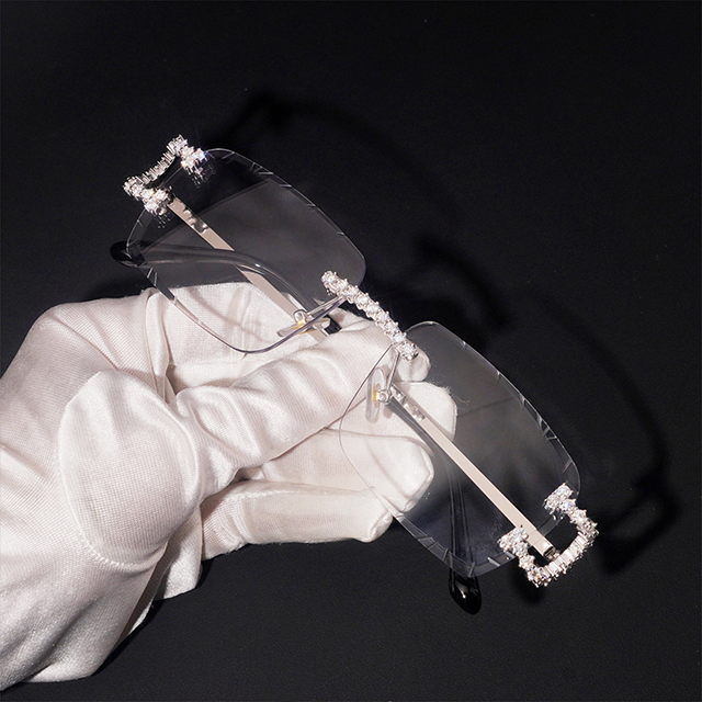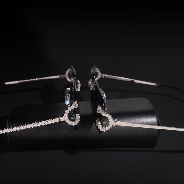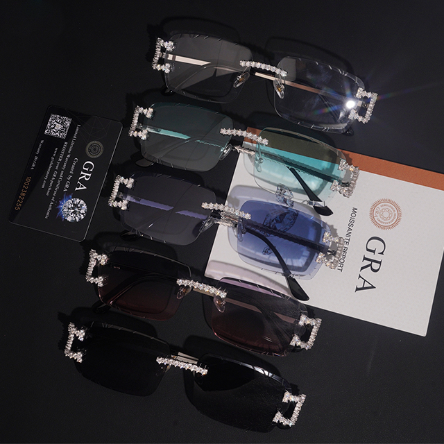 แว่นตาฮิปฮอปแฟชั่นสำหรับผู้ชายและผู้หญิง เลนส์พลาสติกสีเงินแท้ 925 ประดับเพชรโมอิสซาไนต์ ผ่านการทดสอบเพชร
