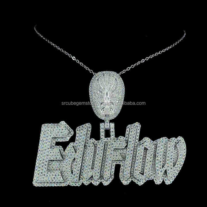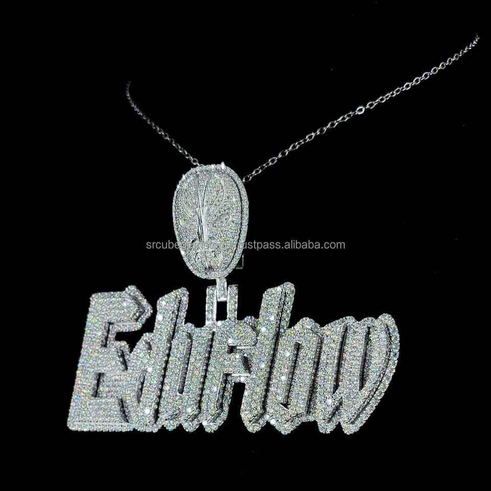 เครื่องประดับฮิปฮอปของผู้ชายจี้ตัวอักษรที่กำหนดเอง925เงิน VVS เพชรโมอิสซาไนท์จี้โลโก้เริ่มต้นชื่อเพชร