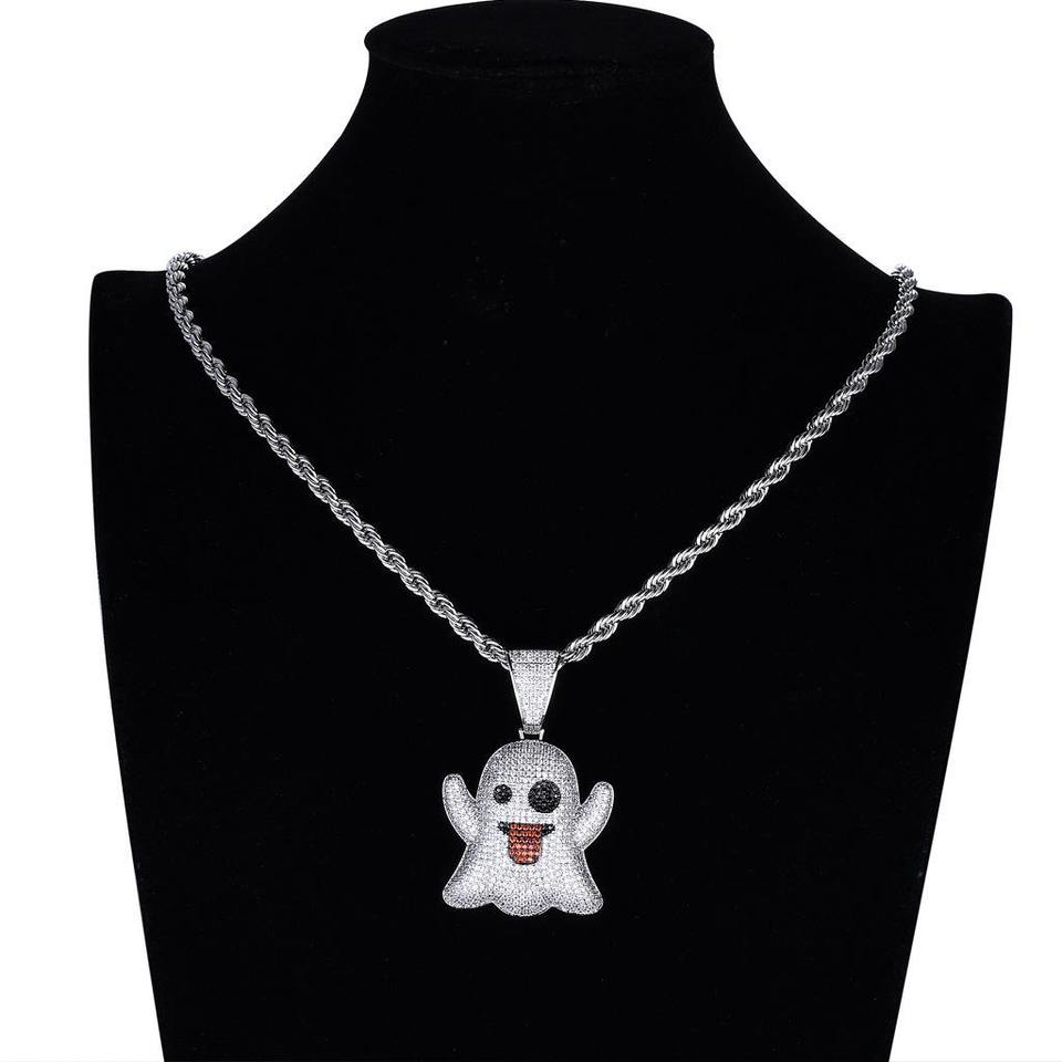สร้อยคอจี้รูปผีการ์ตูนแท่งทองชุบประดับเพชรแบบไมโครอินเลย์ สไตล์ฮิปฮอป