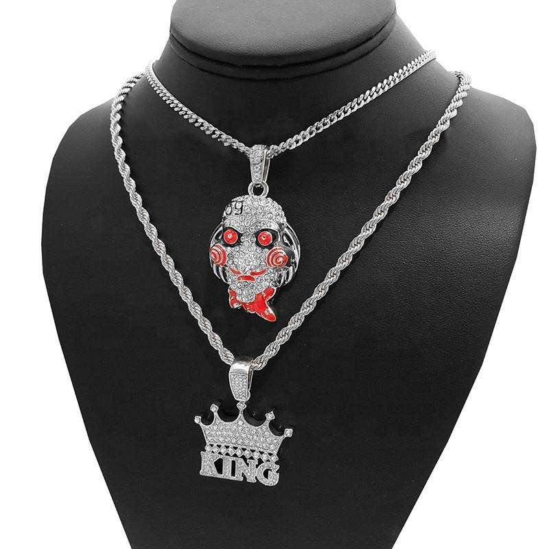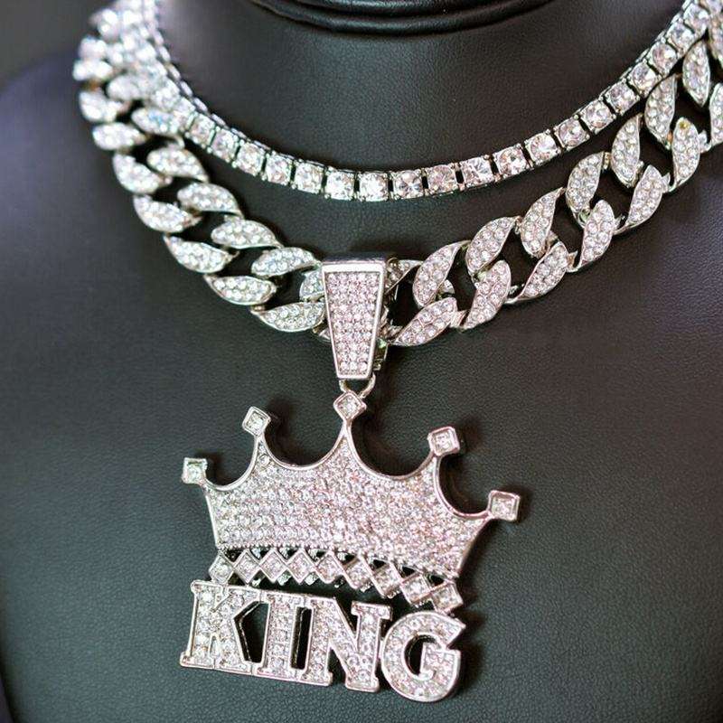 เครื่องประดับฮิปฮอป ผ่านการทดสอบเพชร ประดับเพชรเต็มตัวอักษร มงกุฎเพชร จี้รูปพระราชา สร้อยหนา สำหรับผู้ชาย งานปาร์ตี้ เงินสเตอร์ลิง