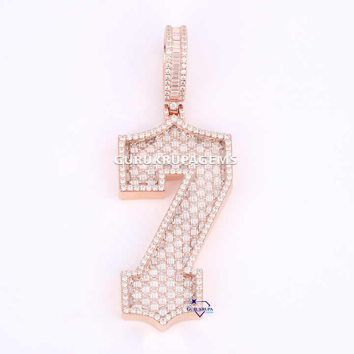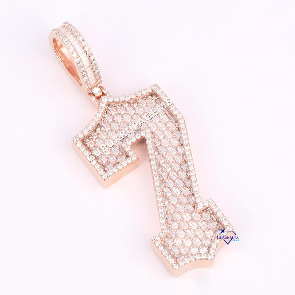 เครื่องประดับฮิปฮอปแบบกลมและแบบบาแกตต์จี้เพชรสำหรับปลูก14Kt โรสโกลด์เลขเด็ดส่วนบุคคลสำหรับผู้ชายได้รับการรับรอง IGI