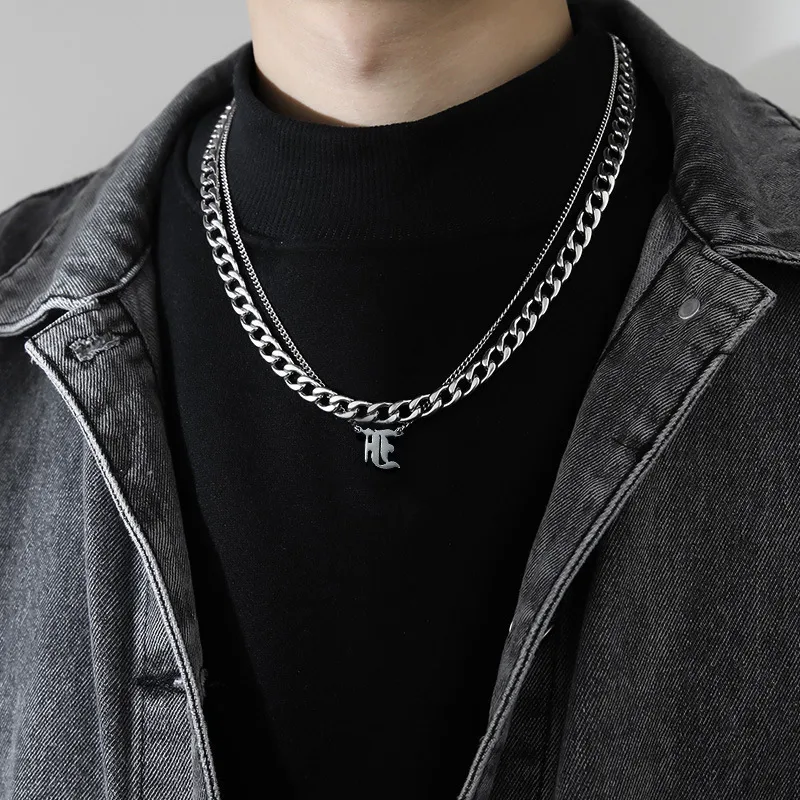 ชุดเครื่องประดับฮิปฮอป ลายหยดน้ำ ทำจากสแตนเลสสตีล ชุบทอง 18K สร้อยคอจี้เพื่อลุคเท่สไตล์คนเมือง
