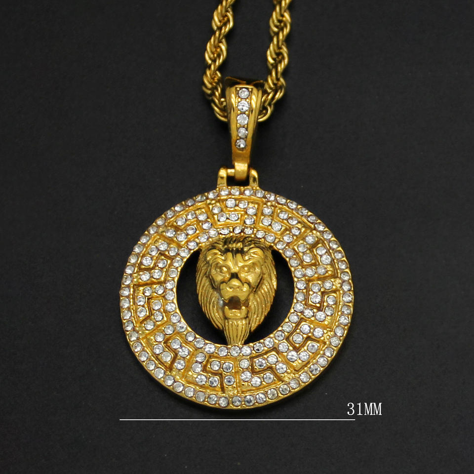 Hip Hop Lion Head CZ Zircon Coin Stainless Steel Gold Plated Pendant Jewelry Fine Fashion Jewelry Necklaces for Men Wholesale