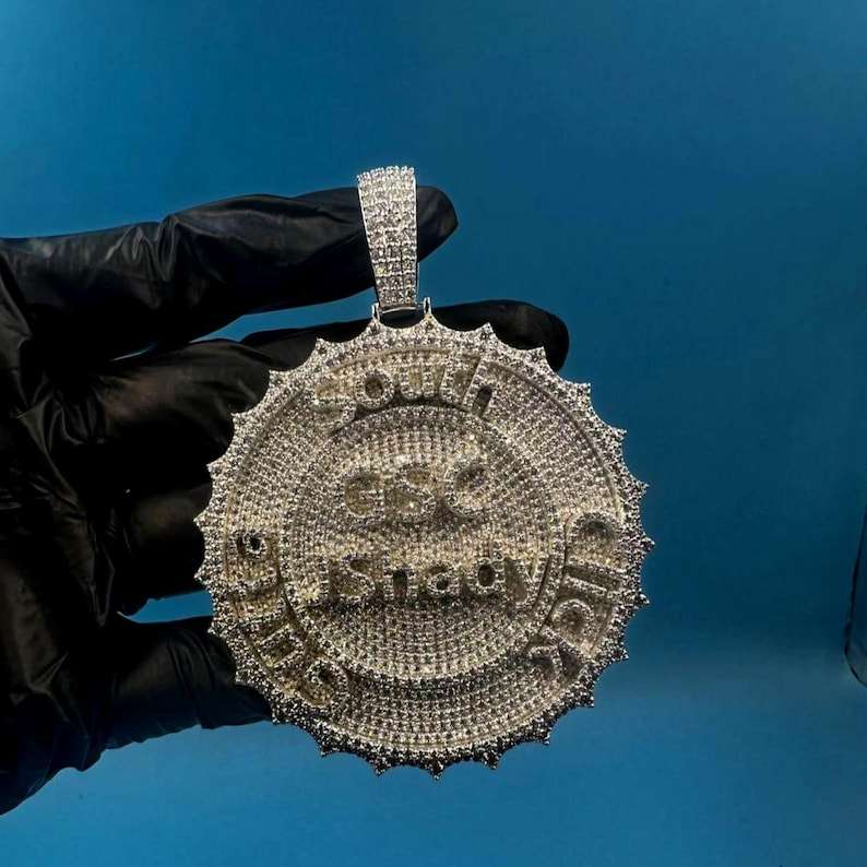 จี้โลโก้ฮิปฮอปสำหรับผู้ชาย ประดับเพชรแบบ Iced Out จี้ตัวอักษรแบบกำหนดเอง เงินแท้ 925 ประดับเพชร VVS มอยส์ซาไนต์ จี้โลโก้ตัวอักษรชื่อ