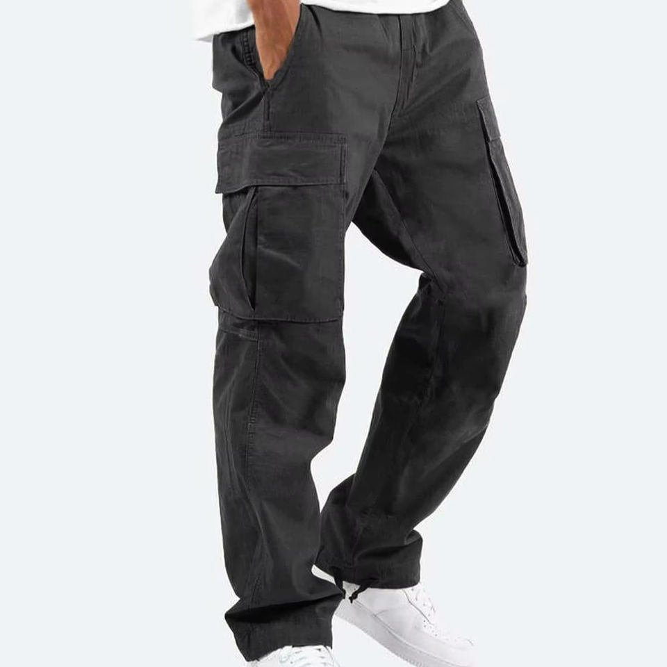 กางเกงคาร์โก้ผู้ชายทรงหลวมสไตล์ฮิปฮอป มีกระเป๋าหลายช่อง รับสกรีนโลโก้ ทรงออกกำลังกาย ผ้าโพลีเอสเตอร์