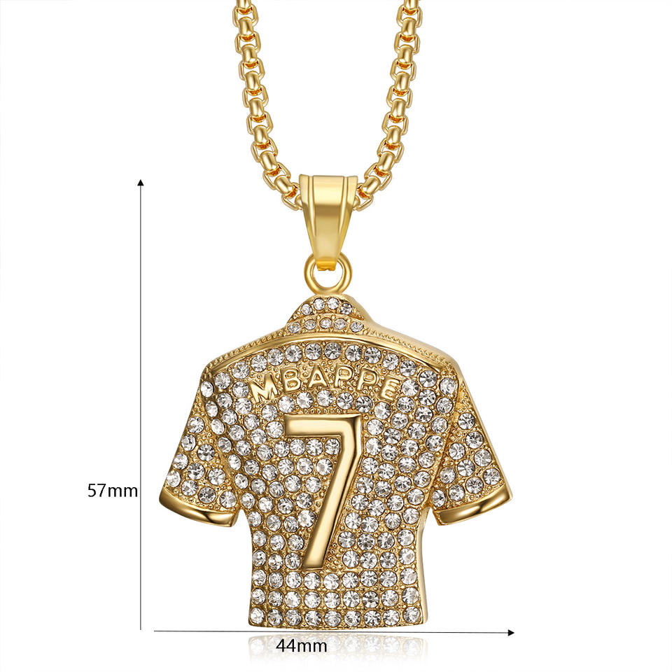 เสื้อฟุตบอลฮิปฮอป mbappe No.7สร้อยคอจี้เครื่องประดับสเตนเลสสตีลกันน้ำปราศจากรอยเปื้อนสำหรับผู้ชายผู้ชายผู้ชายผู้ชาย
