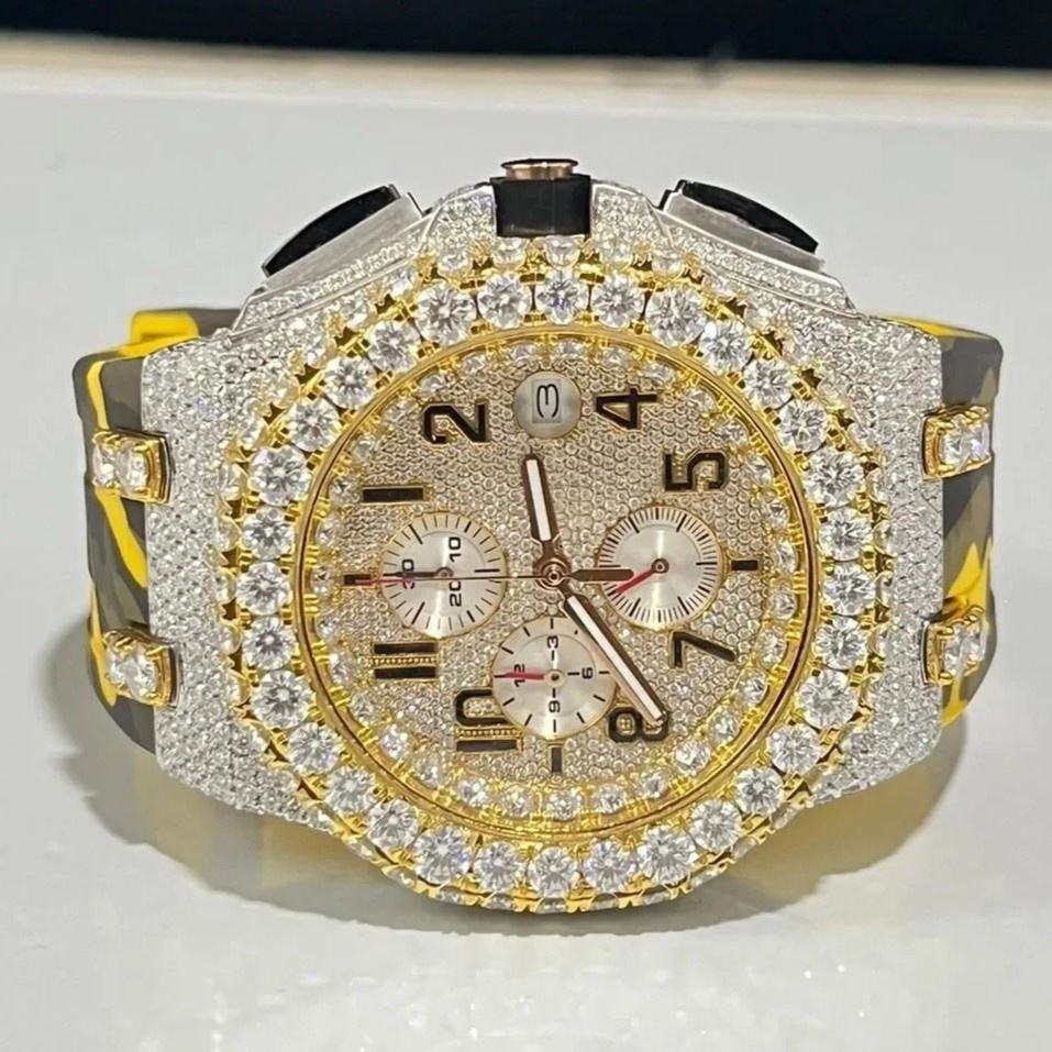 นาฬิกาข้อมือระบบแอนะล็อกระบบกลไกของฮิปฮอปหรูหราสำหรับผู้ชายและผู้หญิงสายไทเทเนี่ยมเย็นซิลิโคนหน้าปัดแก้ว