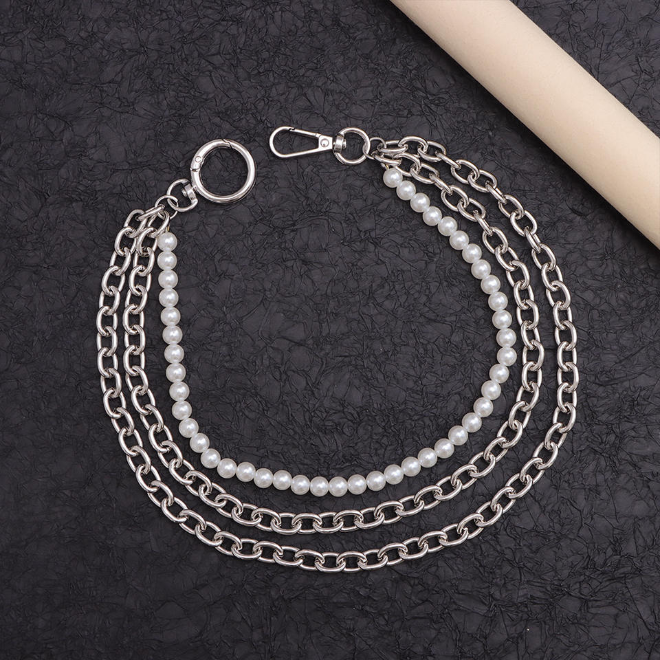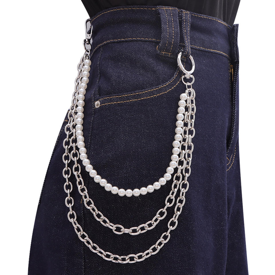 color:First layer of pearl multi-layered trouser chain