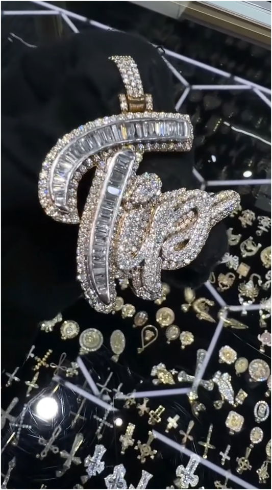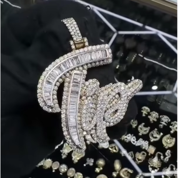 สร้อยคอจี้เพชรโมอิสซาไนต์แบบฮิปฮอป ตัวอักษรโลโก้แบบกำหนดเอง ตัวอักษรแฟนซี เงินแท้ 925 เพชรทรงบาแกตต์ VVS จี้ชื่อสำหรับงานปาร์ตี้