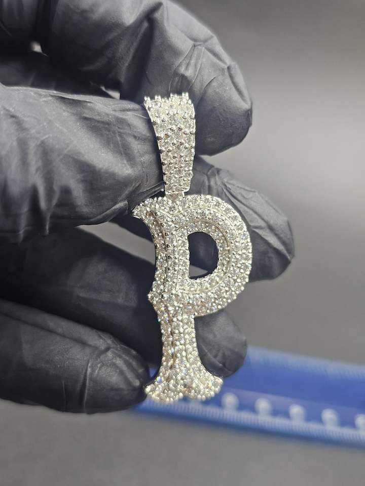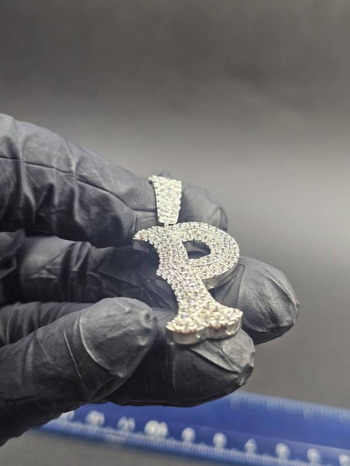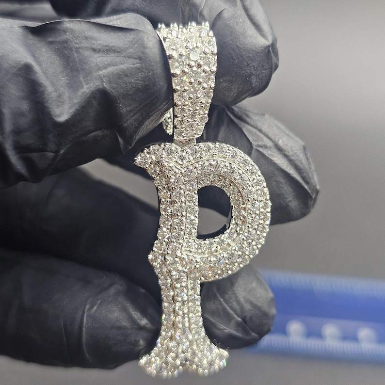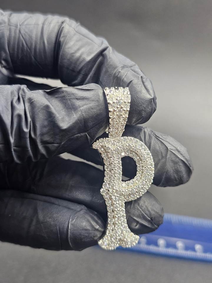 จี้เพชรโมอิสซาไนต์ทรงกลมเจียระไนแบบบริลเลียนท์ ชุบโรเดียม เงินแท้ 925 ดีไซน์ฮิปฮอปสุดหรู พร้อมสลักชื่อตัวอักษรเป็นของขวัญ