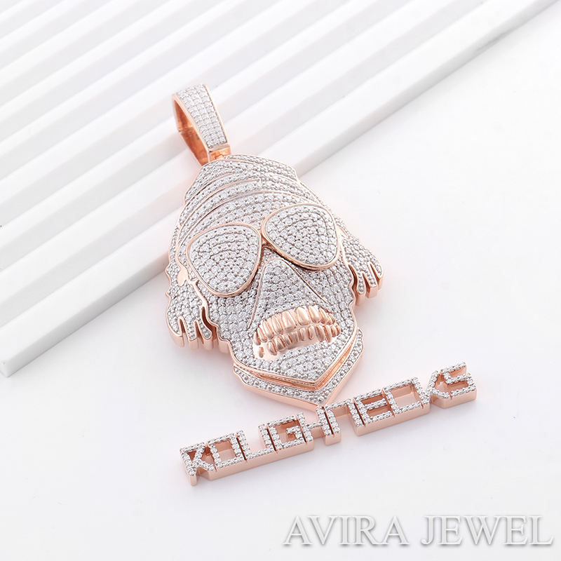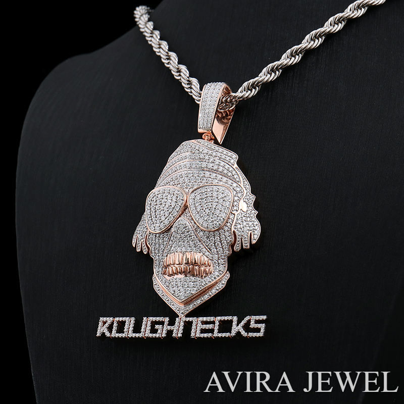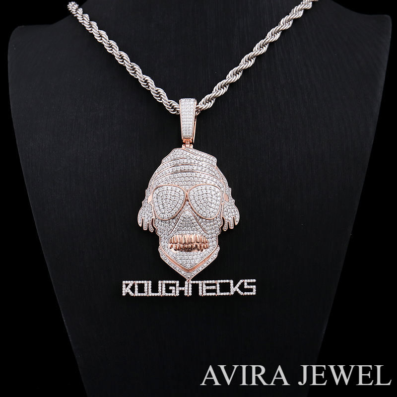 สร้อยคอจี้ฮิปฮอป เงินแท้ 925 ชุบทองคำขาวและโรสโกลด์ ดีไซน์สำหรับทั้งชายและหญิง ประดับโมอิสซาไนต์ ปราศจากนิกเกิล