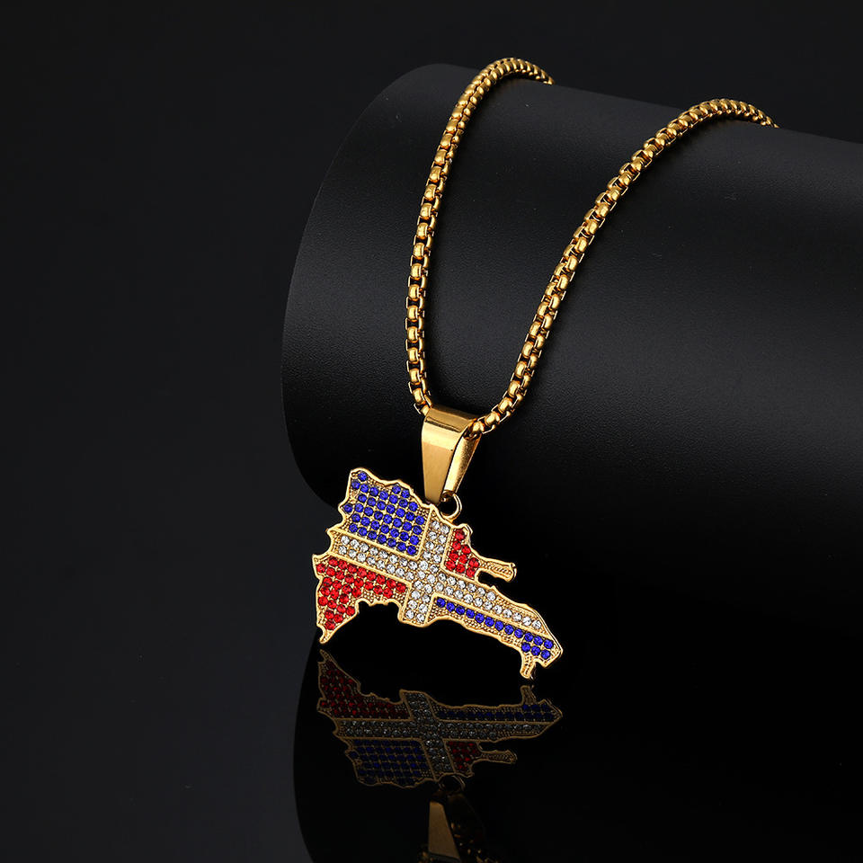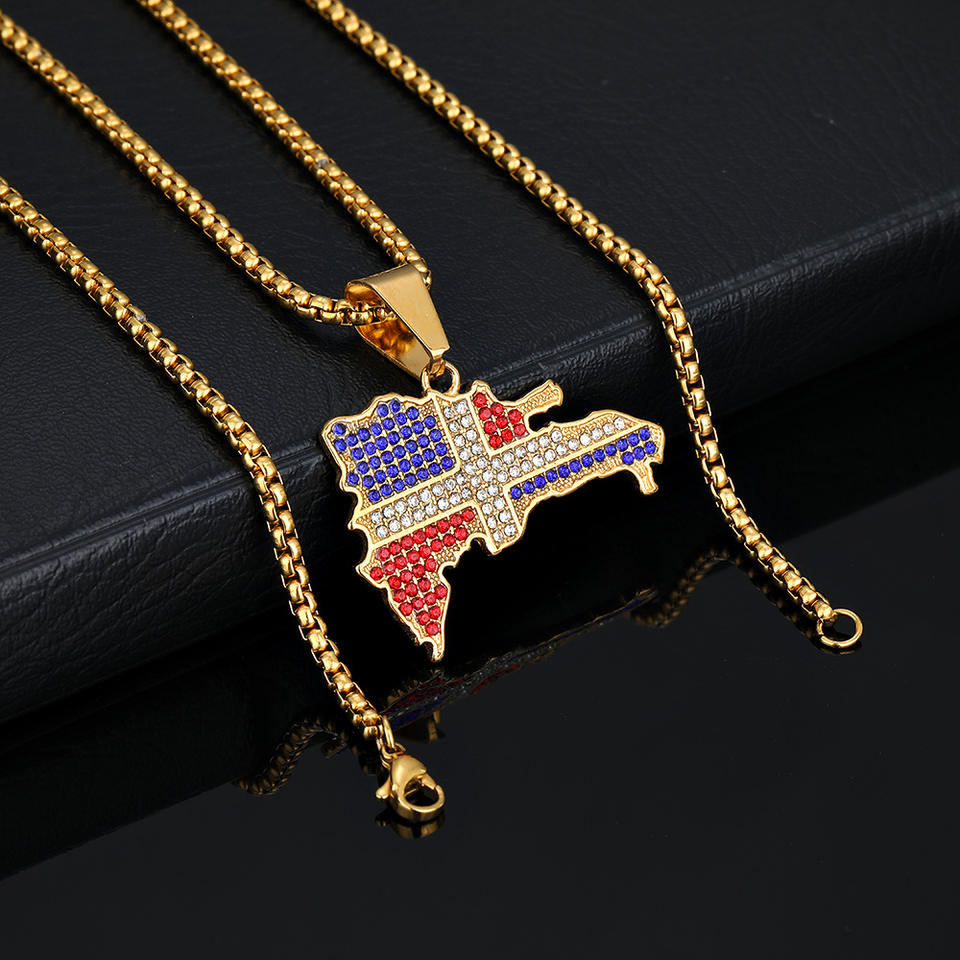สร้อยคอจี้รูปธงชาติโดมินิกันสไตล์ฮิปฮอปพังก์ลายเรขาคณิต ทำจากสแตนเลสสตีลกันน้ำ ไม่หมอง ชุบทอง 18K ของขวัญสำหรับผู้หญิง