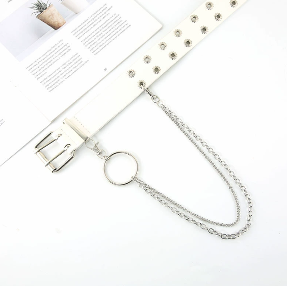 ฮิปฮอปสไตล์พังก์วินเทจชายและหญิงหัวเข็มขัดหมุดกับห่วงโซ่โลหะเข็มขัดลำลองแฟชั่นแบบเรียบง่ายสำหรับเสื้อผ้าเครื่องประดับ
