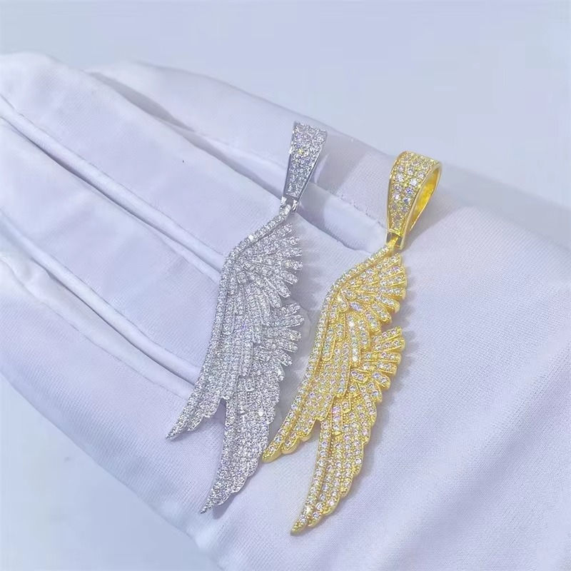 ฮิปฮอปอ่าน D สีเพชรโมอิส VVS1จี้ปีกน้ำแข็งเต็มจี้สำหรับผู้หญิงและผู้ชายชุบทอง925เงินสเตอร์ลิง