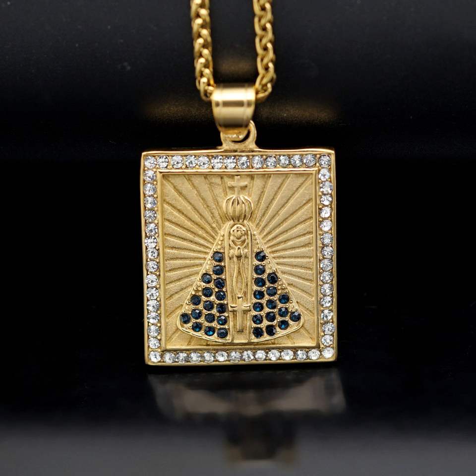 Hip Hop Religious Virgin Mary Cross Waterproof Tarnish Free Stainless Steel Jewelry Pendant Necklaces Man Men Male