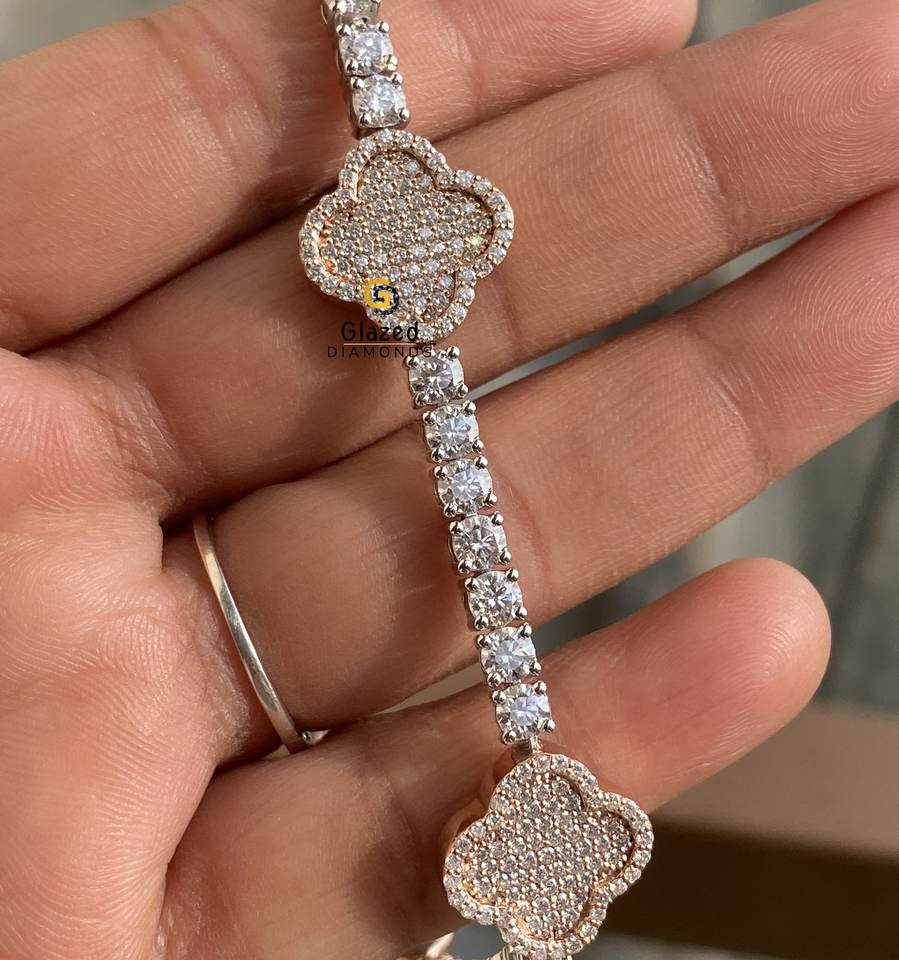 สร้อยข้อมือประดับเพชรรูปใบโคลเวอร์ประดับเพชรสำหรับผู้หญิงทำด้วยทองคำ10K ดีไซน์ตามสั่ง
