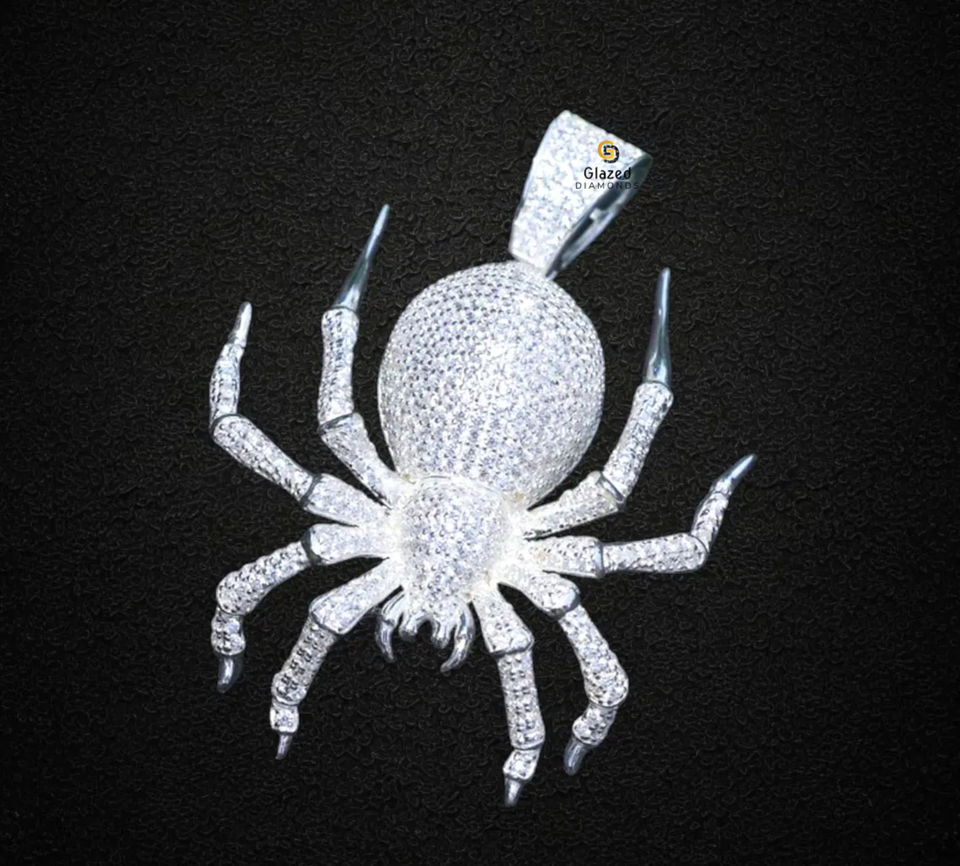 ฮิปฮอปทรงกลมตัด VVS D สีแล็บปลูกเพชร10K จี้แมงมุมสีล้วนสีขาวสำหรับทุกเพศ
