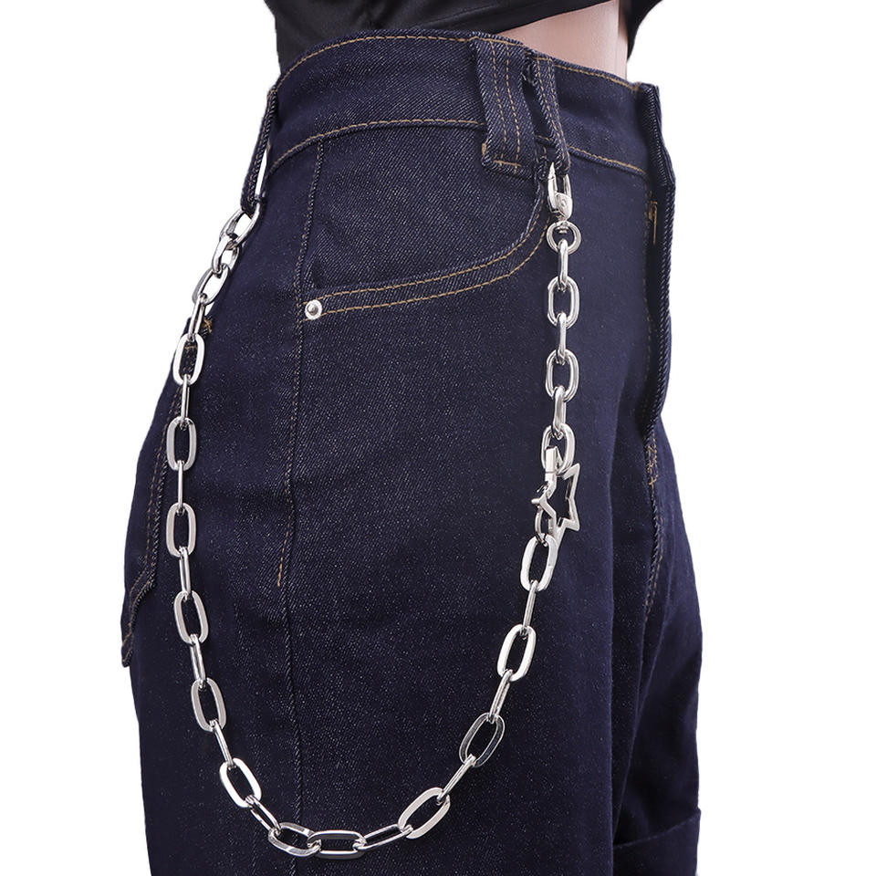 สร้อยคาดเอวแบบโซ่ชั้นเดียวลายดาวสีเงินสไตล์ฮิปฮอป สำหรับกางเกงยีนส์ เครื่องประดับแฟชั่นสำหรับใส่ทุกวัน ทำจากโลหะผสมสังกะสี